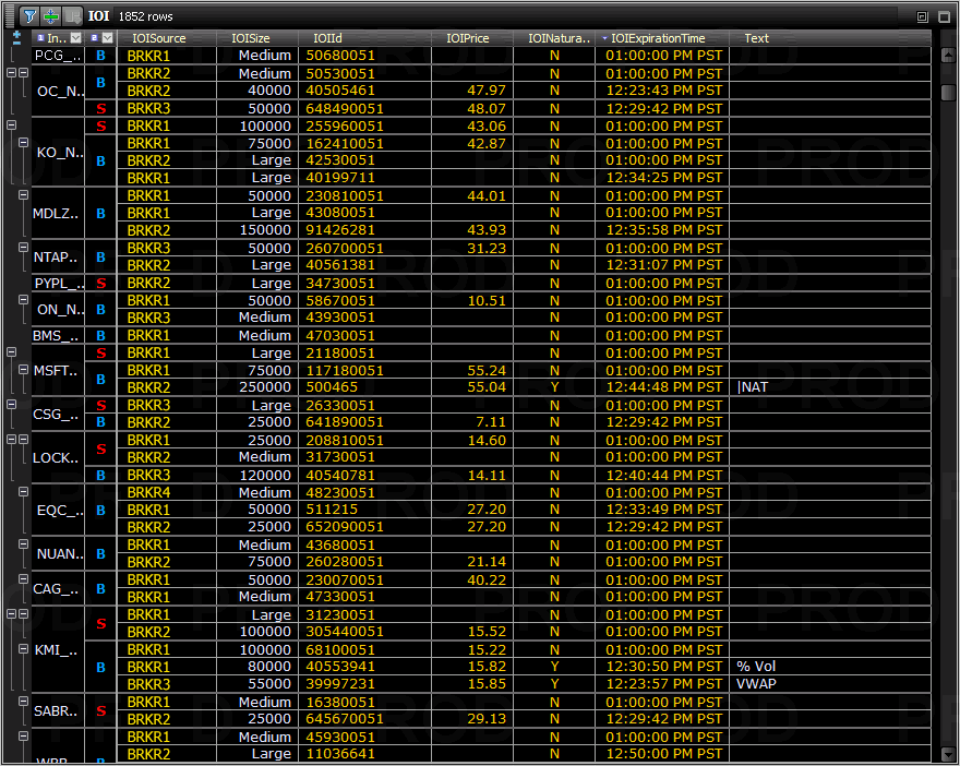 Traders can view IOIs filtered, aggregated, grouped and sorted according to their preferences.