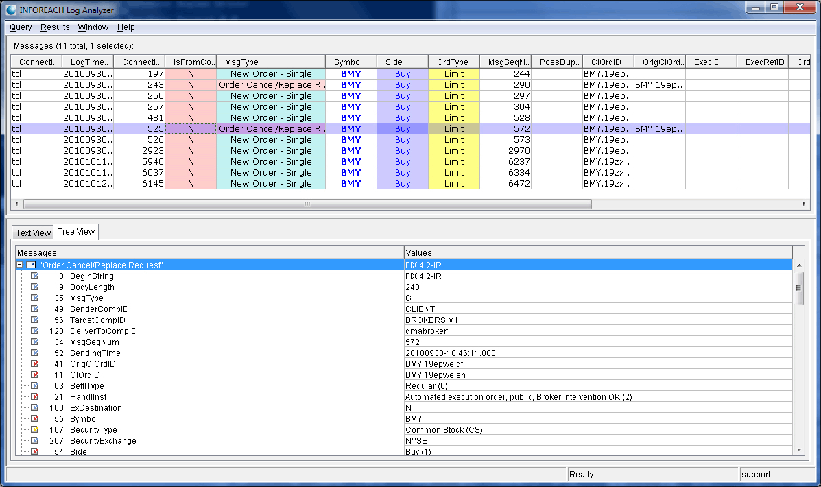 FIX Message Log Analyzer of InfoReach FIX Engine